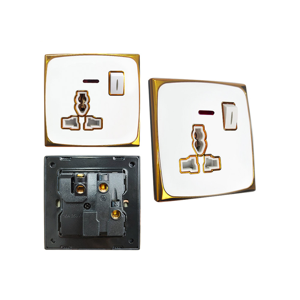 Home / Product / A101,A111Series( PC White&Gold Edge Design) / 16A 3pin Universal Socket Electric Outlet And Switch With Neon