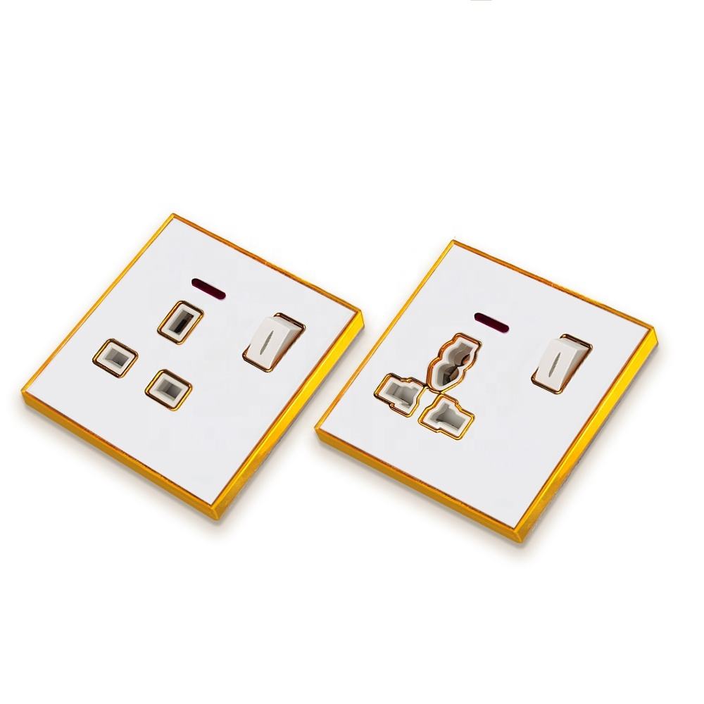 Home / Product / A101,A111Series( PC White&Gold Edge Design) / Wall Switch PC 3gang2way Wood Color Light Switch Electrical On Off For Hotel