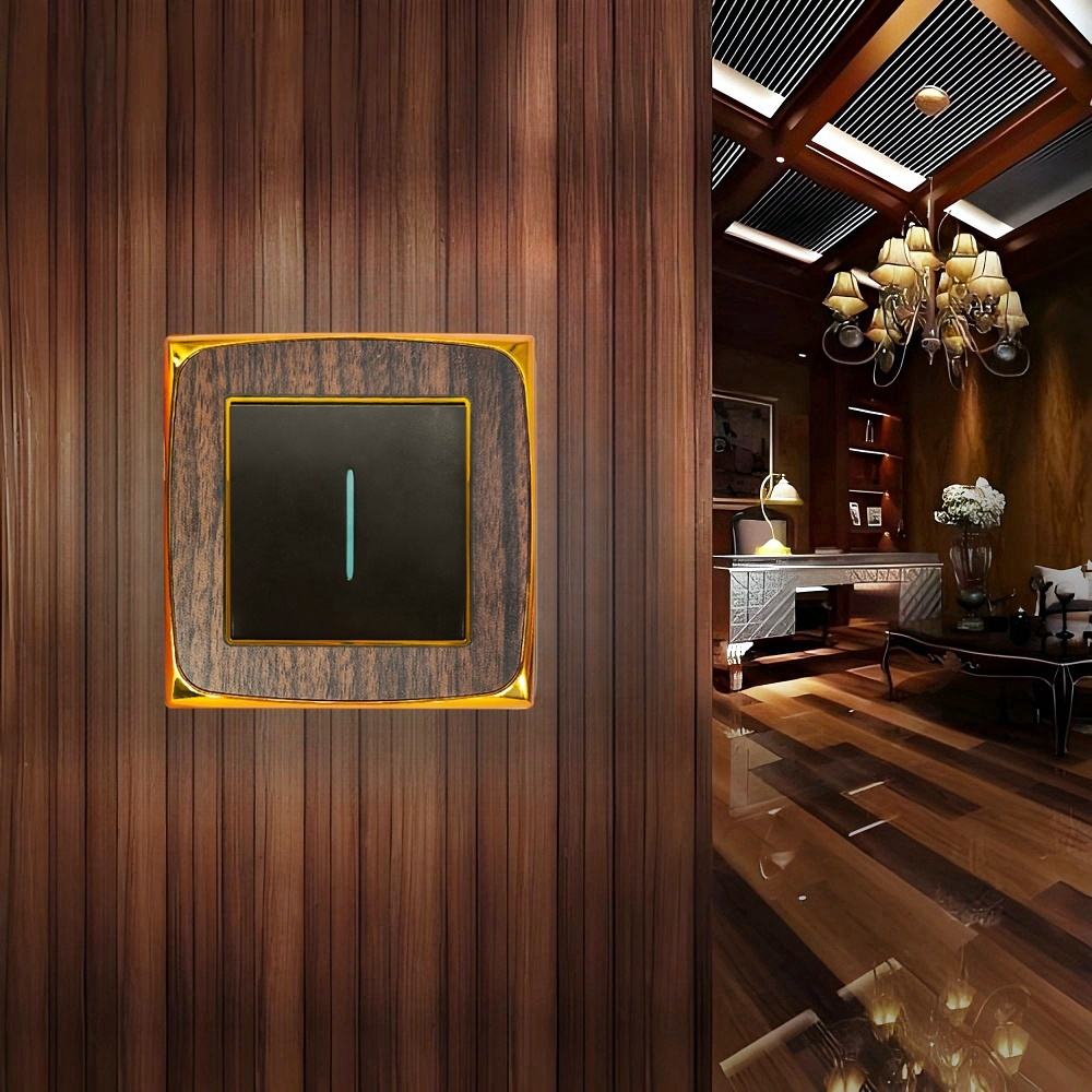 Home / Product / A113,A114 Series( PC Matte Wooden Gold Design) / New Wood Color Wall Button Switch 10a 1gang2way Light Switch Home Application
