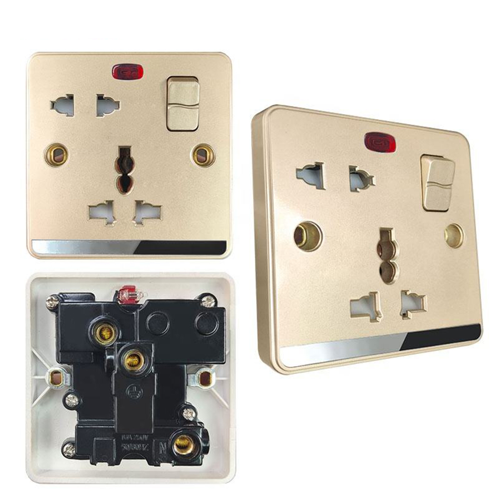 Home / Product / A632 Series (PC Golden Design Wall Switch Socket) / 5 Pin 16a Universal Electrical Outlet Switched And Socket With Neon